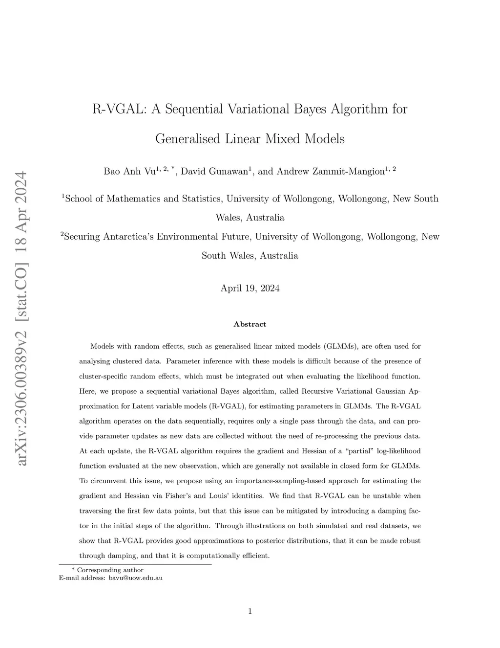 R-VGAL: A Sequential Variational Bayes Algorithm for Generalised Linear