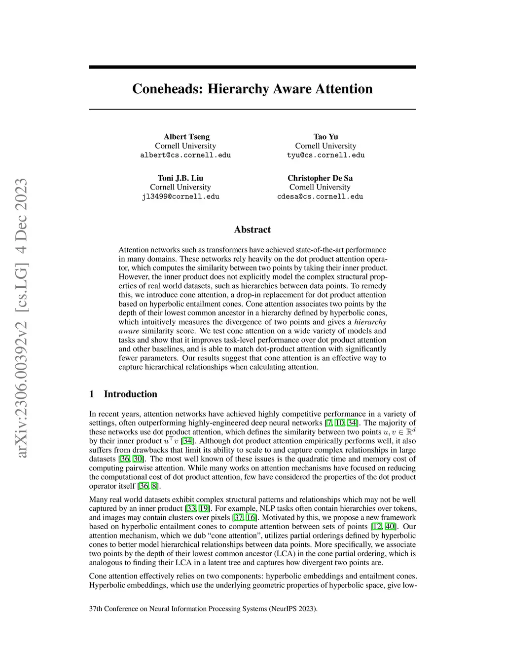 Coneheads: Hierarchy Aware Attention