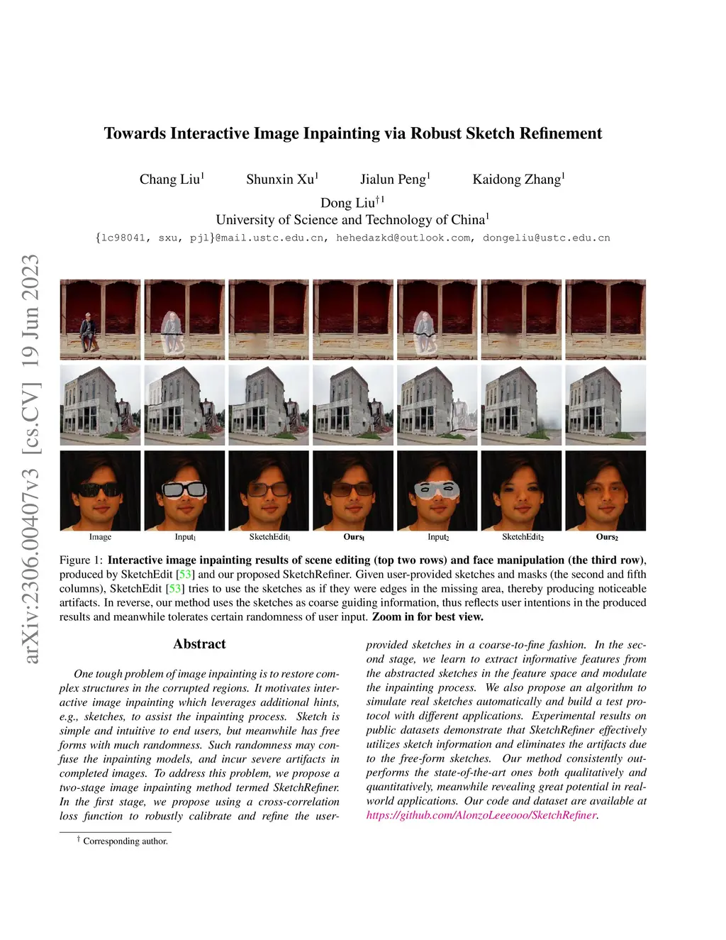 Towards Interactive Image Inpainting via Sketch Refinement