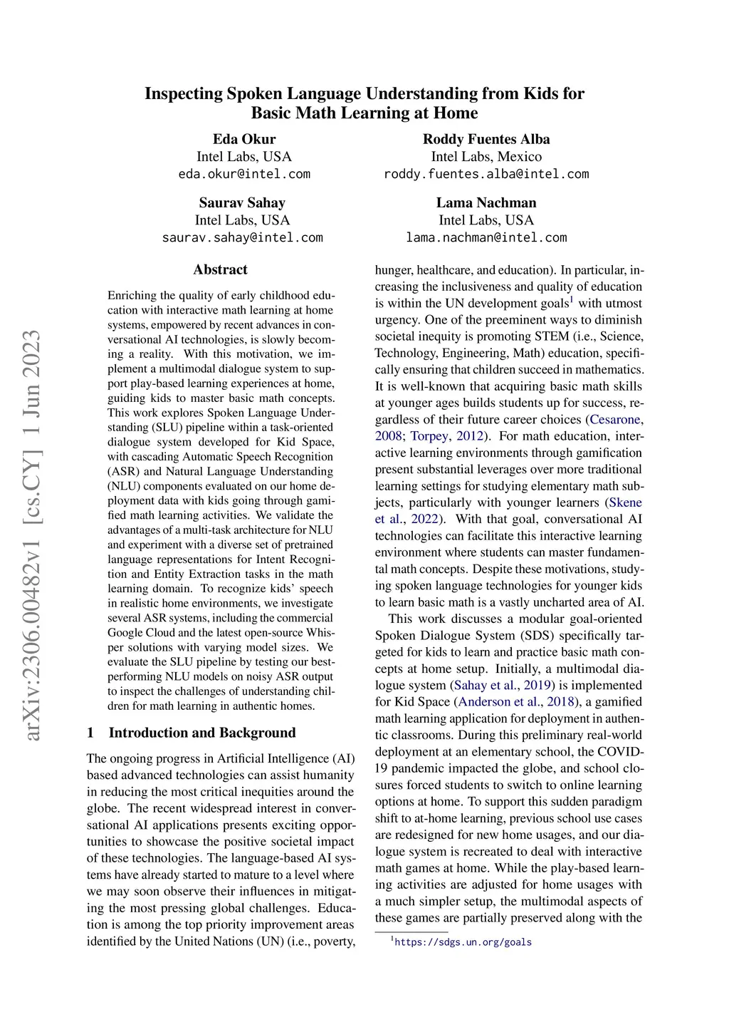 Inspecting Spoken Language Understanding from Kids for Basic Math