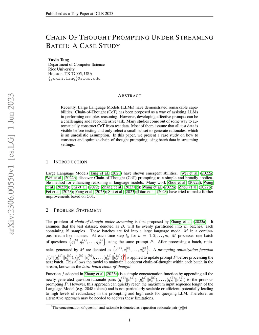 Chain-Of-Thought Prompting Under Streaming Batch: A Case Study