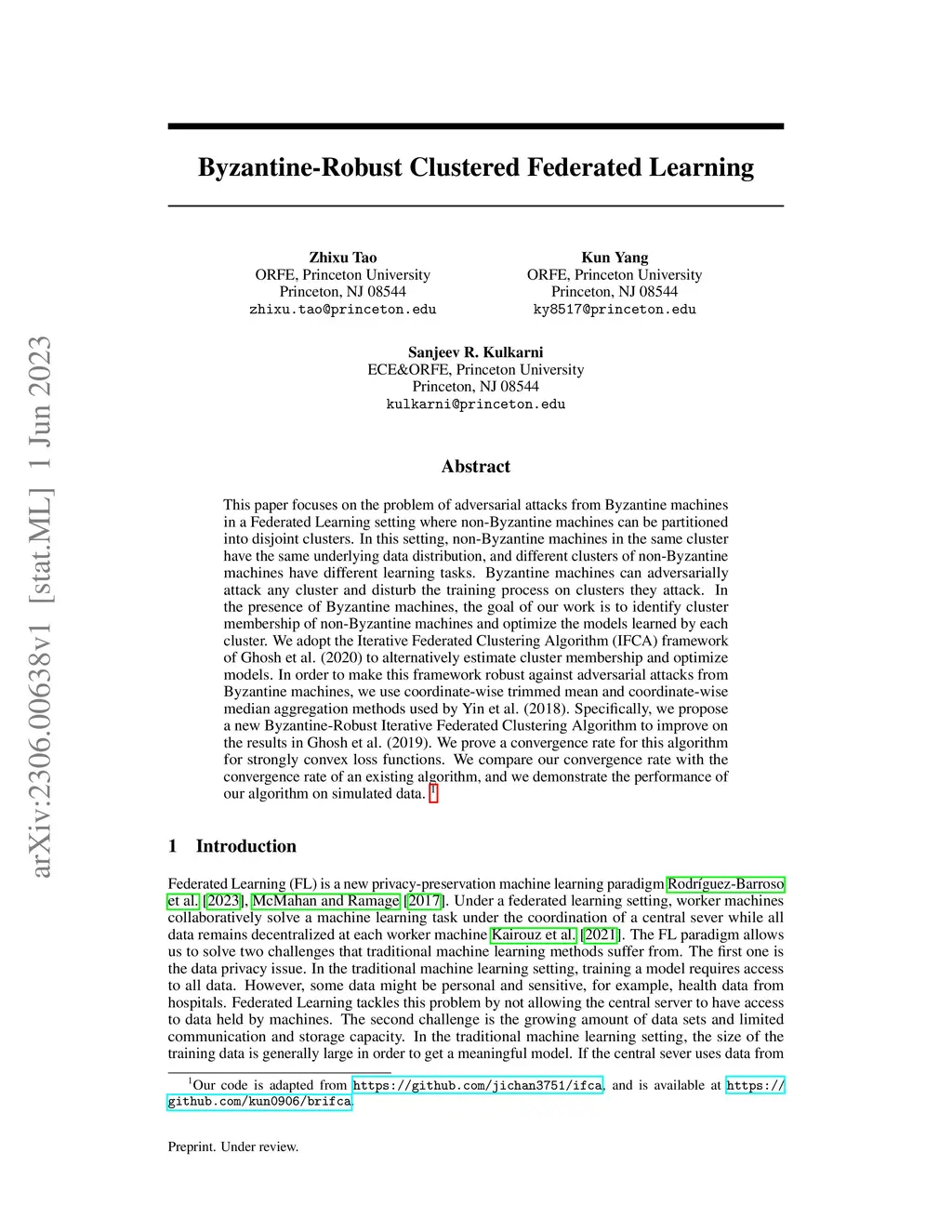 This paper focuses on the problem of adversarial attacks from Byzantine machines in a Federated Learning setting where non-Byzantine machines can be partitioned into disjoint clusters. In this setting, non-Byzantine machines in the same cluster have the same underlying data distribution, and different clusters of non-Byzantine machines have different learning tasks. Byzantine machines can adversarially attack any cluster and disturb the training process on clusters they attack. In the presence of Byzantine machines, the goal of our work is to identify cluster membership of non-Byzantine machines and optimize the models learned by each cluster. We adopt the Iterative Federated Clustering Algorithm (IFCA) framework of Ghosh et al. (2020) to alternatively estimate cluster membership and optimize models. In order to make this framework robust against adversarial attacks from Byzantine machines, we use coordinate-wise trimmed mean and coordinate-wise median aggregation methods used by Yin et al. (2018). Specifically, we propose a new Byzantine-Robust Iterative Federated Clustering Algorithm to improve on the results in Ghosh et al. (2019). We prove a convergence rate for this algorithm for strongly convex loss functions. We compare our convergence rate with the convergence rate of an existing algorithm, and we demonstrate the performance of our algorithm on simulated data.