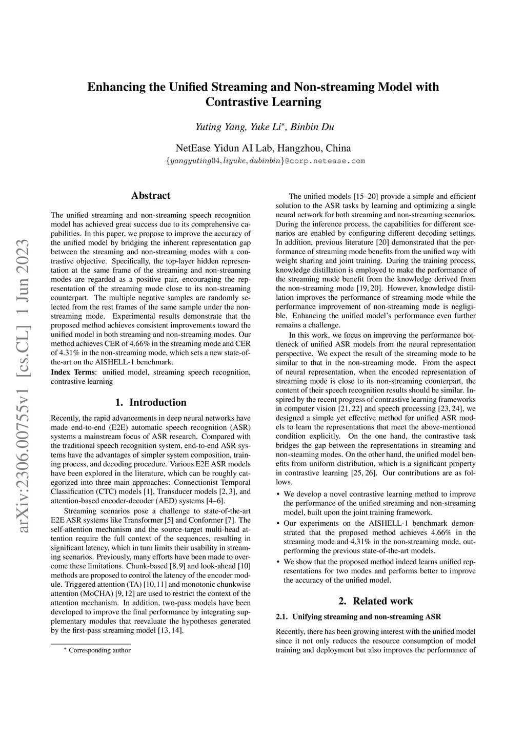 Enhancing the Unified Streaming and Non-streaming Model with Contrastive