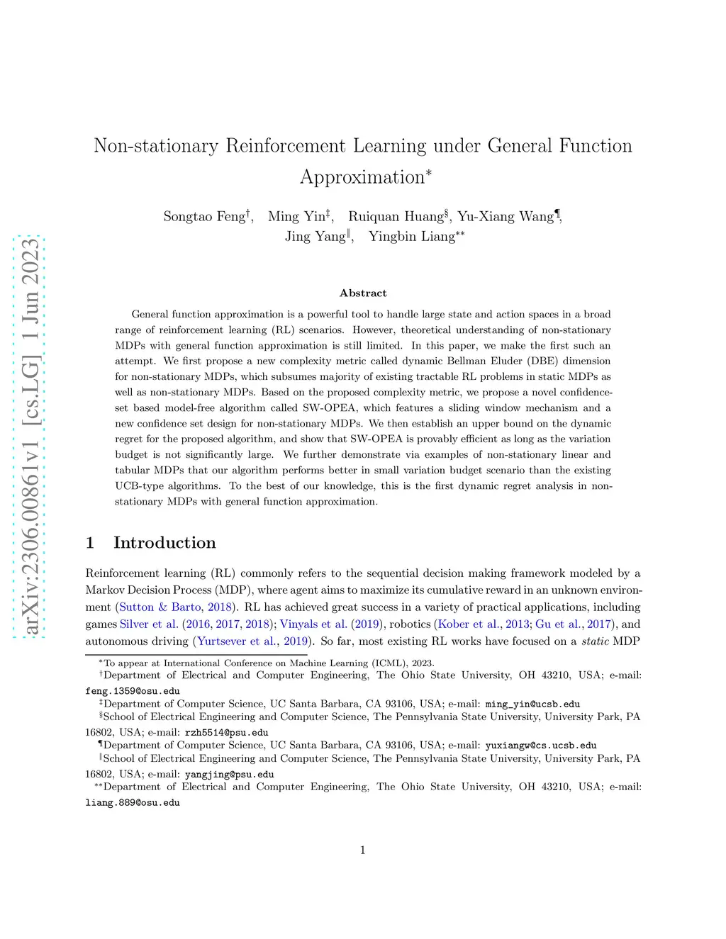 Non-stationary Reinforcement Learning under General Function