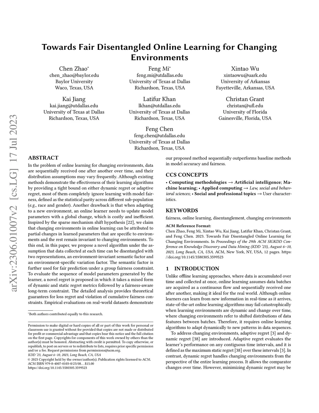 Towards Fair Disentangled Online Learning for Changing Environments