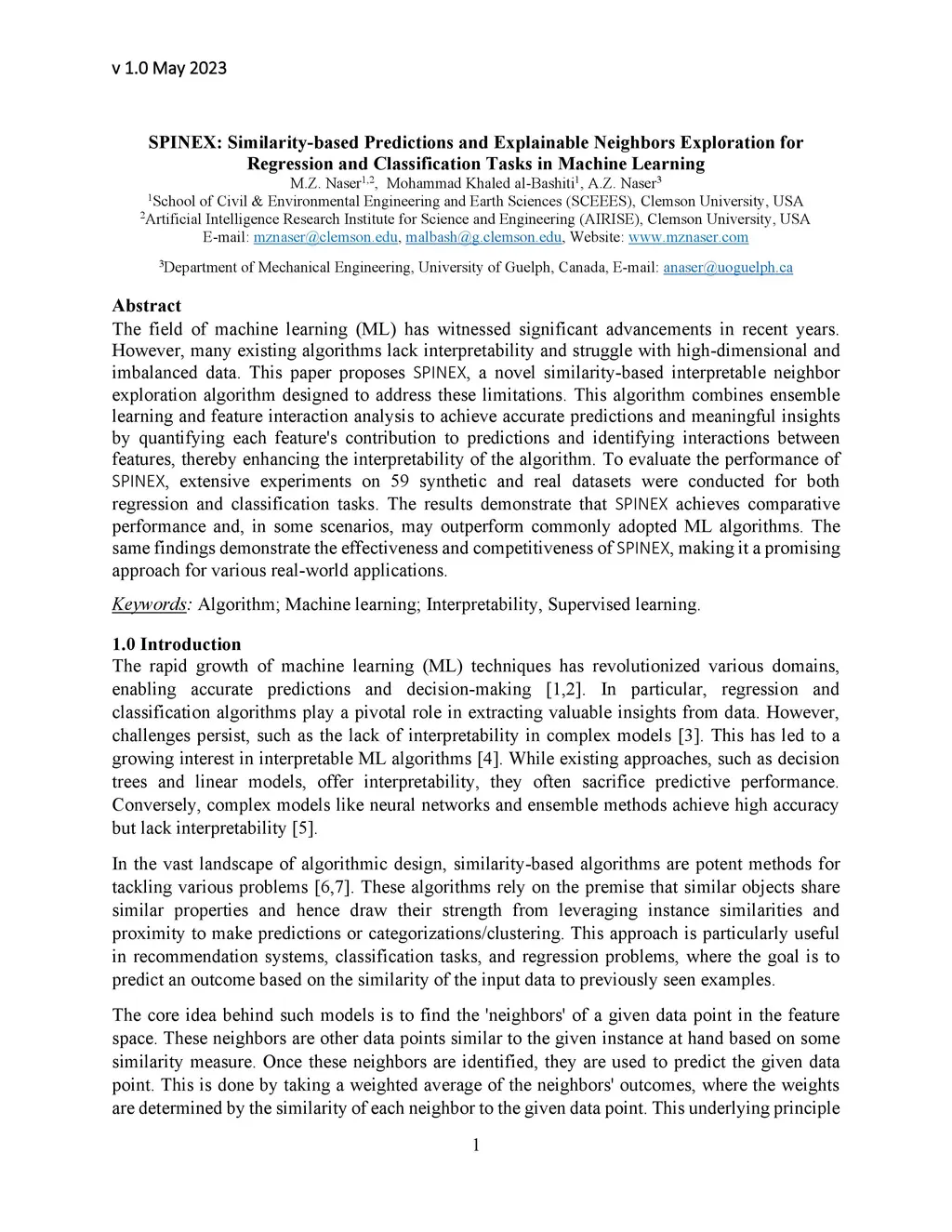 The field of machine learning (ML) has witnessed significant advancements in recent years. However, many existing algorithms lack interpretability and struggle with high-dimensional and imbalanced data. This paper proposes SPINEX, a novel similarity-based interpretable neighbor exploration algorithm designed to address these limitations. This algorithm combines ensemble learning and feature interaction analysis to achieve accurate predictions and meaningful insights by quantifying each feature's contribution to predictions and identifying interactions between features, thereby enhancing the interpretability of the algorithm. To evaluate the performance of SPINEX, extensive experiments on 59 synthetic and real datasets were conducted for both regression and classification tasks. The results demonstrate that SPINEX achieves comparative performance and, in some scenarios, may outperform commonly adopted ML algorithms. The same findings demonstrate the effectiveness and competitiveness of SPINEX, making it a promising approach for various real-world applications.