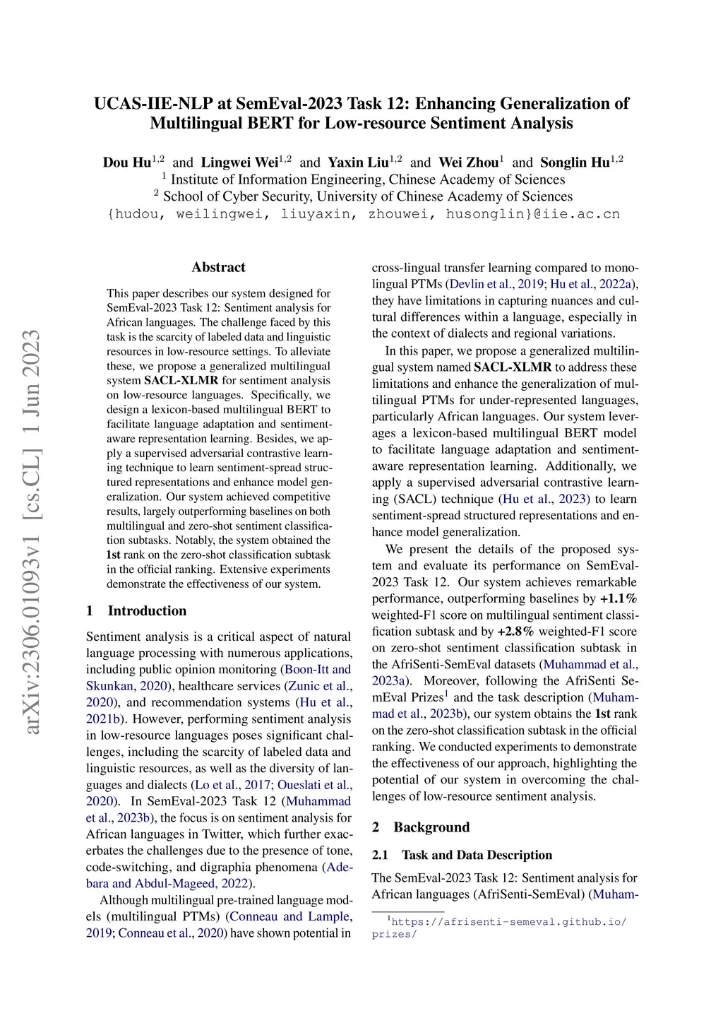 UCAS-IIE-NLP at SemEval-2023 Task 12: Enhancing Generalization of