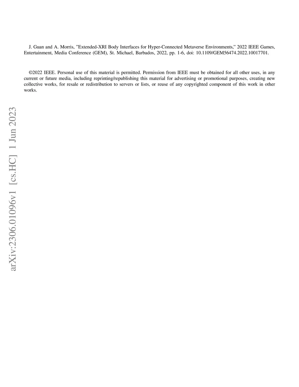 Extended-XRI Body Interfaces for Hyper-Connected Metaverse Environments