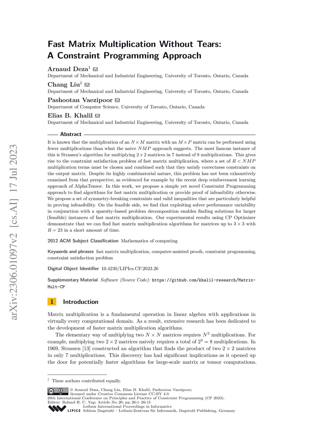 Fast Matrix Multiplication Without Tears: A Constraint Programming