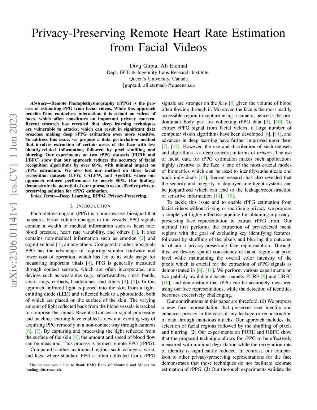 Privacy-Preserving Remote Heart Rate Estimation from Facial Videos