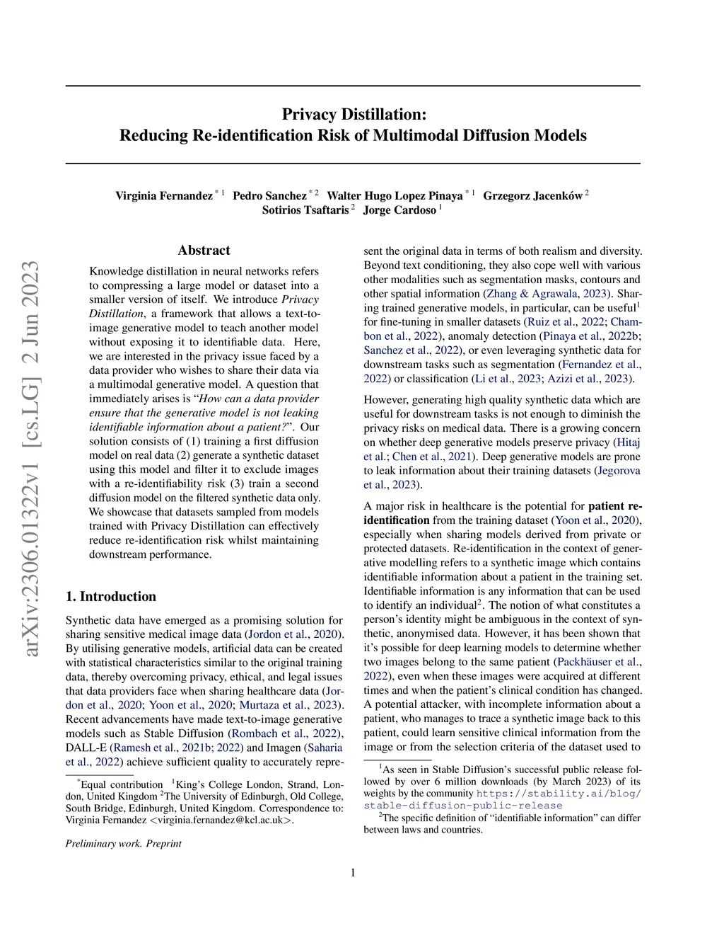 Privacy Distillation: Reducing Re-identification Risk of Multimodal
