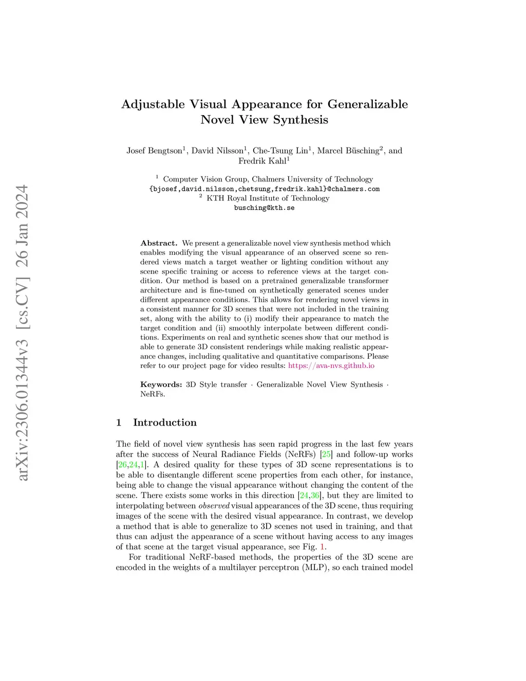 Adjustable Visual Appearance for Generalizable Novel View Synthesis