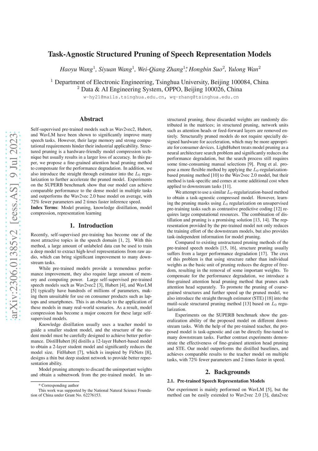 Task-Agnostic Structured Pruning of Speech Representation Models
