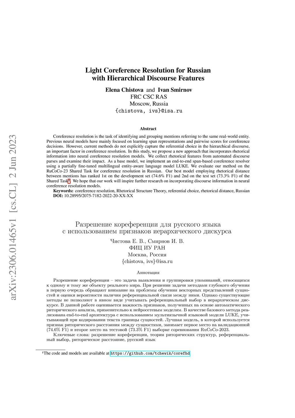 Light Coreference Resolution for Russian with Hierarchical Discourse