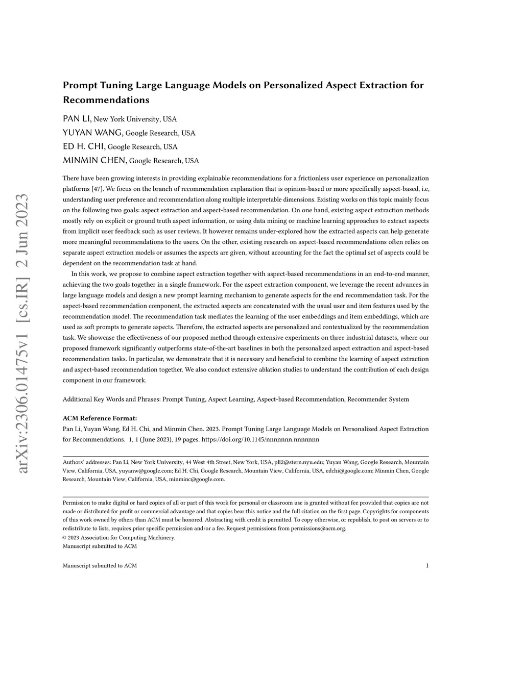 Prompt Tuning Large Language Models on Personalized Aspect Extraction