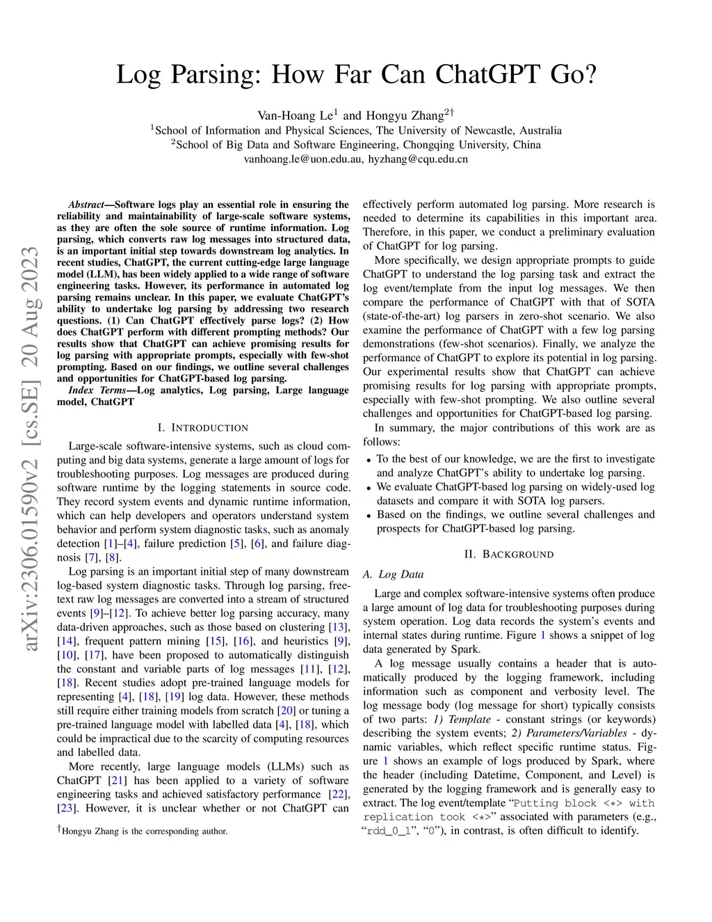 Software logs play an essential role in ensuring the reliability and maintainability of large-scale software systems, as they are often the sole source of runtime information. Log parsing, which converts raw log messages into structured data, is an important initial step towards downstream log analytics. In recent studies, ChatGPT, the current cutting-edge large language model (LLM), has been widely applied to a wide range of software engineering tasks. However, its performance in automated log parsing remains unclear. In this paper, we evaluate ChatGPT's ability to undertake log parsing by addressing two research questions. (1) Can ChatGPT effectively parse logs? (2) How does ChatGPT perform with different prompting methods? Our results show that ChatGPT can achieve promising results for log parsing with appropriate prompts, especially with few-shot prompting. Based on our findings, we outline several challenges and opportunities for ChatGPT-based log parsing.