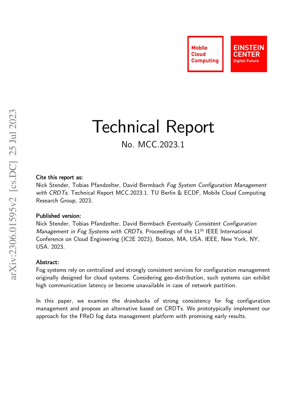 Current fog systems rely on centralized and strongly consistent services for configuration management originally designed for cloud systems. In the geo-distributed fog, such systems can exhibit high communication latency or become unavailable in case of network partition. In this paper, we examine the drawbacks of strong consistency for fog configuration management and propose an alternative based on CRDTs. We prototypically implement our approach for the FReD fog data management platform. Early results show reductions of server response times of up to 50\%.