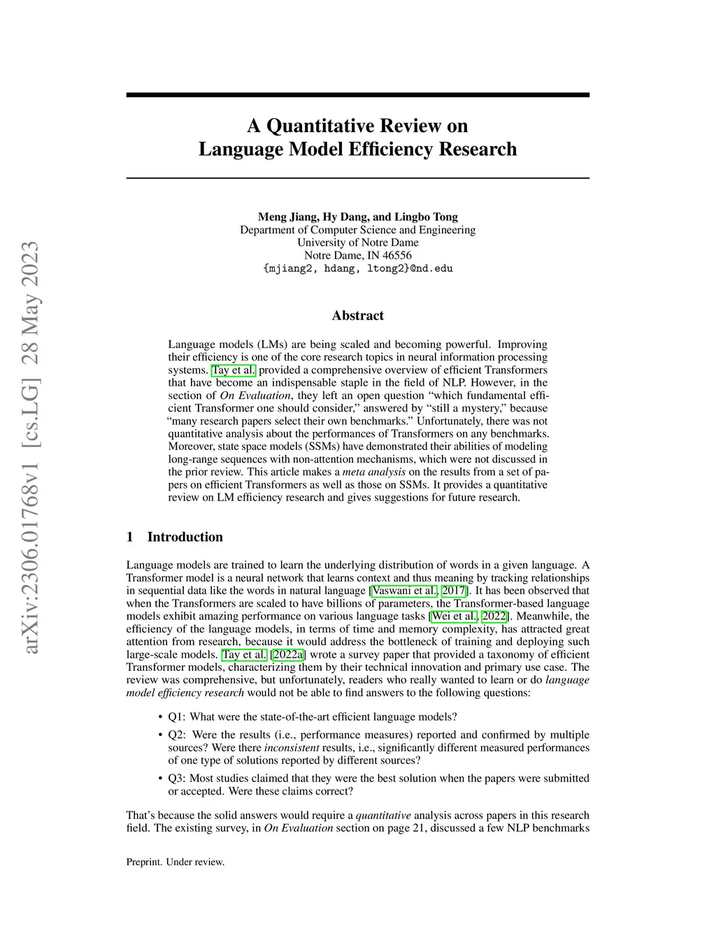 A Quantitative Review on Language Model Efficiency Research