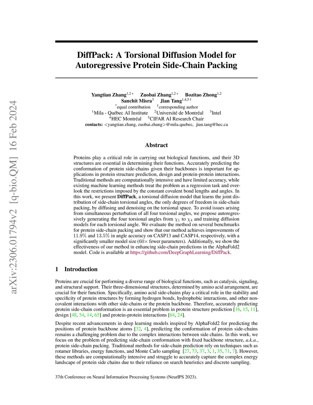 DiffPack: A Torsional Diffusion Model for Autoregressive Protein