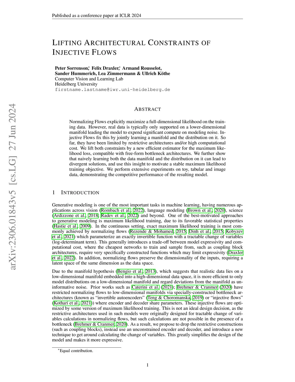Normalizing Flows explicitly maximize a full-dimensional likelihood on the training data. However, real data is typically only supported on a lower-dimensional manifold leading the model to expend significant compute on modeling noise. Injective Flows fix this by jointly learning a manifold and the distribution on it. So far, they have been limited by restrictive architectures and/or high computational cost. We lift both constraints by a new efficient estimator for the maximum likelihood loss, compatible with free-form bottleneck architectures. We further show that naively learning both the data manifold and the distribution on it can lead to divergent solutions, and use this insight to motivate a stable maximum likelihood training objective. We perform extensive experiments on toy, tabular and image data, demonstrating the competitive performance of the resulting model.