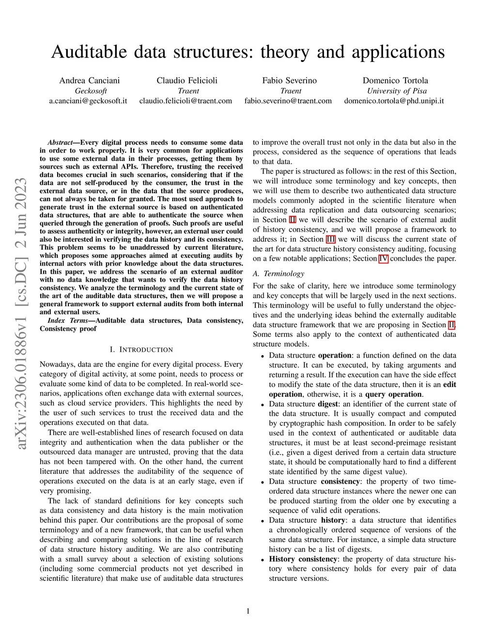 Every digital process needs to consume some data in order to work properly. It is very common for applications to use some external data in their processes, getting them by sources such as external APIs. Therefore, trusting the received data becomes crucial in such scenarios, considering that if the data are not self-produced by the consumer, the trust in the external data source, or in the data that the source produces, can not always be taken for granted. The most used approach to generate trust in the external source is based on authenticated data structures, that are able to authenticate the source when queried through the generation of proofs. Such proofs are useful to assess authenticity or integrity, however, an external user could also be interested in verifying the data history and its consistency. This problem seems to be unaddressed by current literature, which proposes some approaches aimed at executing audits by internal actors with prior knowledge about the data structures. In this paper, we address the scenario of an external auditor with no data knowledge that wants to verify the data history consistency. We analyze the terminology and the current state of the art of the auditable data structures, then we will propose a general framework to support external audits from both internal and external users.