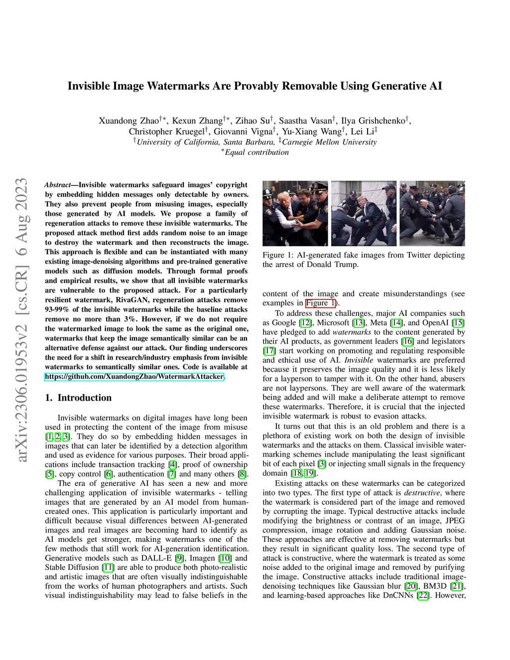 Invisible Image Watermarks Are Provably Removable Using Generative AI