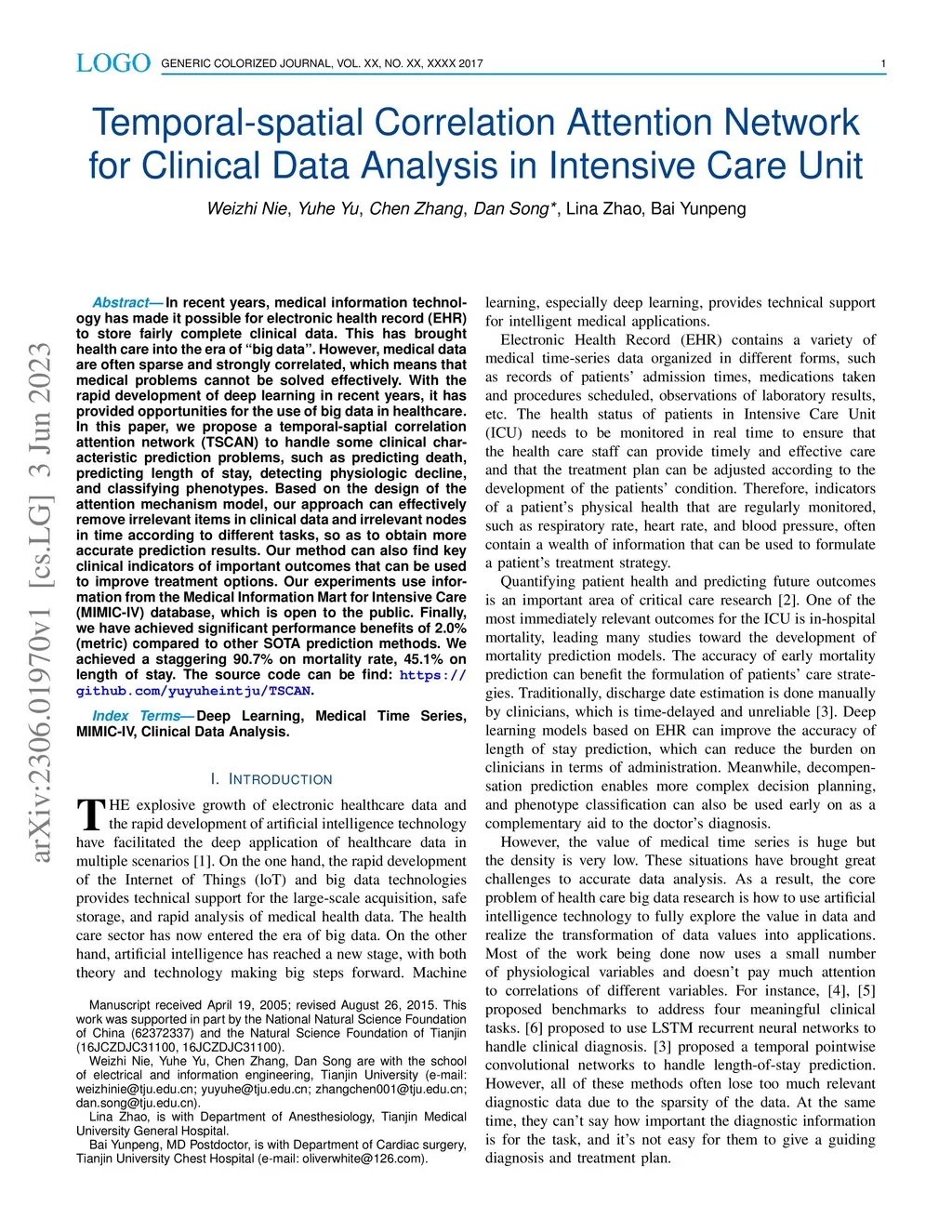 Temporal-spatial Correlation Attention Network for Clinical Data