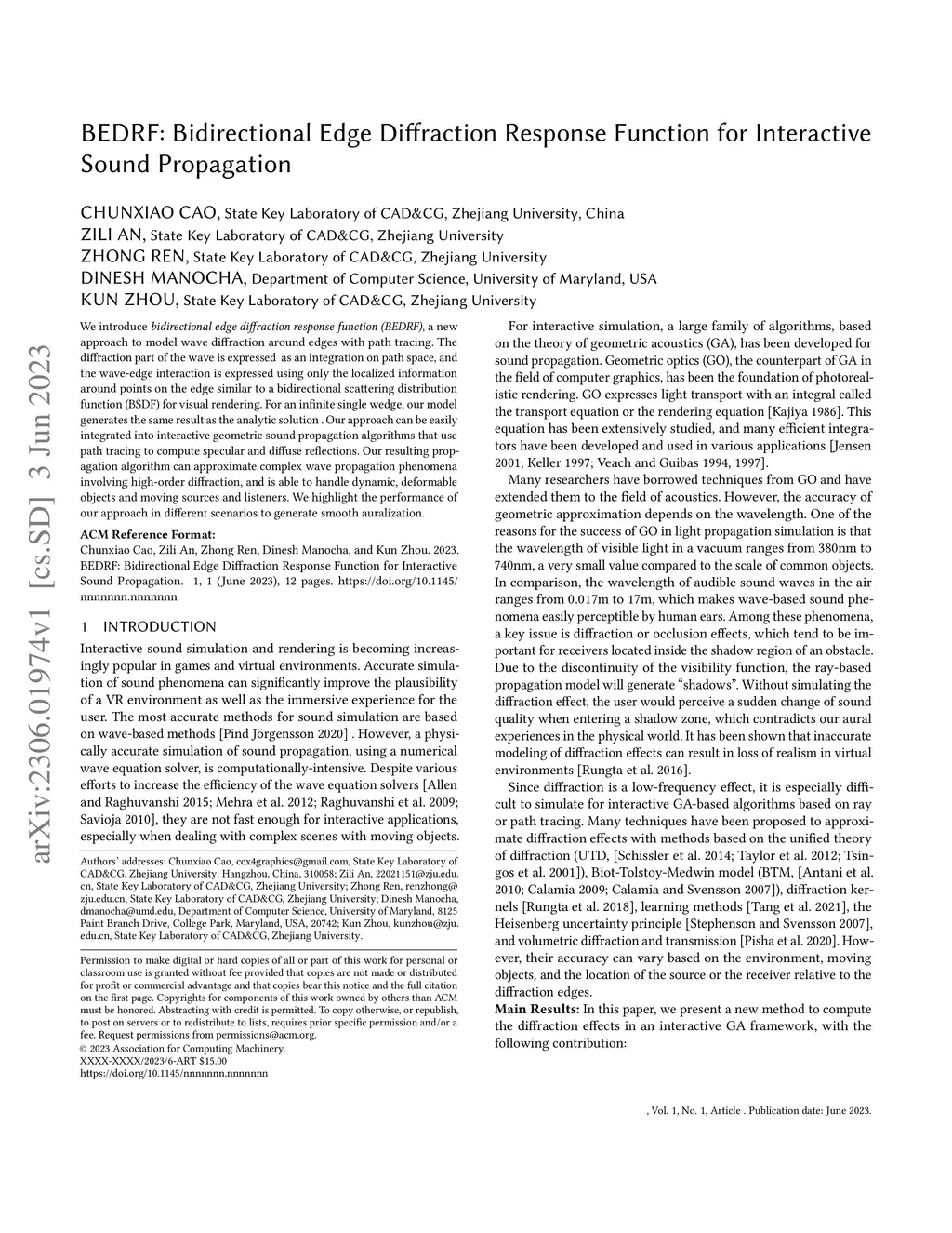 BEDRF: Bidirectional Edge Diffraction Response Function for Interactive