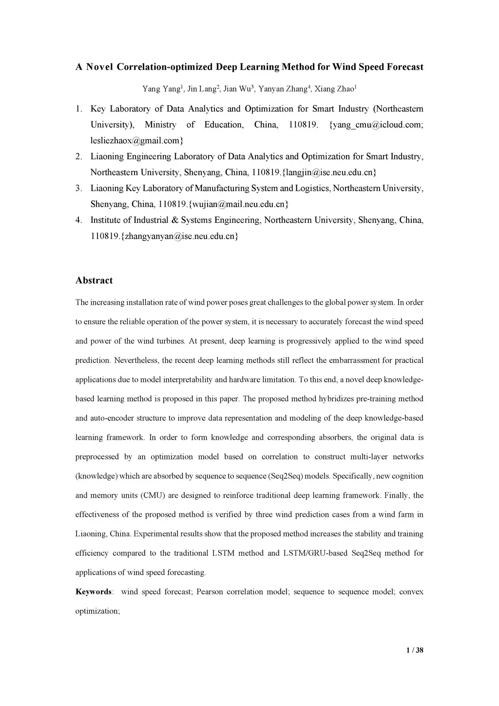 A Novel Correlation-optimized Deep Learning Method for Wind Speed