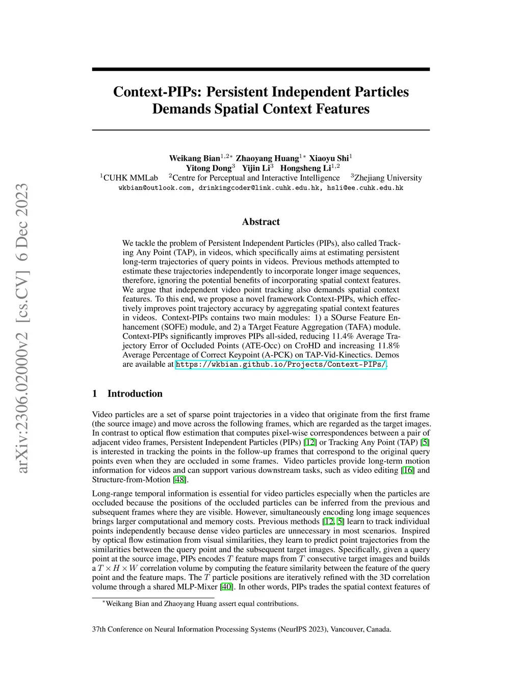 Context-PIPs: Persistent Independent Particles Demands Spatial Context