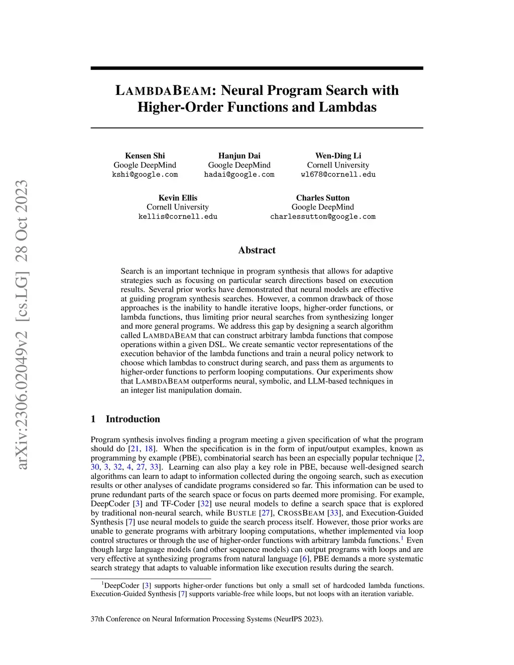 LambdaBeam: Neural Program Search with Higher-Order Functions and