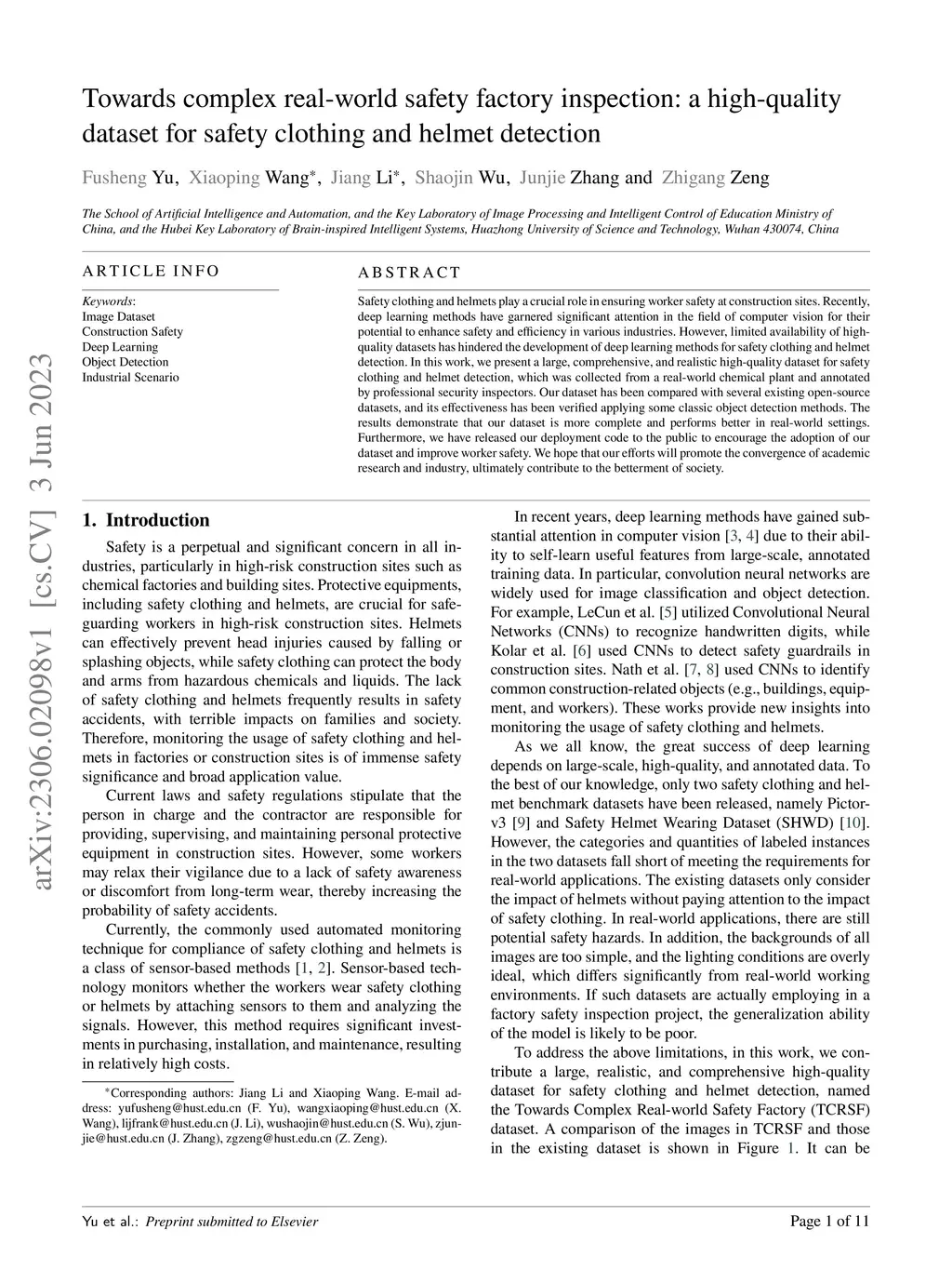 Safety clothing and helmets play a crucial role in ensuring worker safety at construction sites. Recently, deep learning methods have garnered significant attention in the field of computer vision for their potential to enhance safety and efficiency in various industries. However, limited availability of high-quality datasets has hindered the development of deep learning methods for safety clothing and helmet detection. In this work, we present a large, comprehensive, and realistic high-quality dataset for safety clothing and helmet detection, which was collected from a real-world chemical plant and annotated by professional security inspectors. Our dataset has been compared with several existing open-source datasets, and its effectiveness has been verified applying some classic object detection methods. The results demonstrate that our dataset is more complete and performs better in real-world settings. Furthermore, we have released our deployment code to the public to encourage the adoption of our dataset and improve worker safety. We hope that our efforts will promote the convergence of academic research and industry, ultimately contribute to the betterment of society.