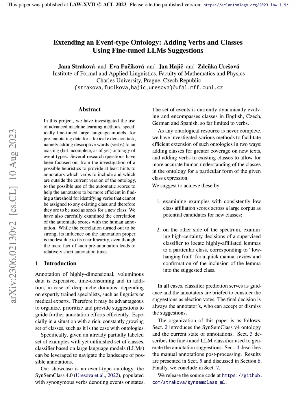 In this project, we have investigated the use of advanced machine learning methods, specifically fine-tuned large language models, for pre-annotating data for a lexical extension task, namely adding descriptive words (verbs) to an existing (but incomplete, as of yet) ontology of event types. Several research questions have been focused on, from the investigation of a possible heuristics to provide at least hints to annotators which verbs to include and which are outside the current version of the ontology, to the possible use of the automatic scores to help the annotators to be more efficient in finding a threshold for identifying verbs that cannot be assigned to any existing class and therefore they are to be used as seeds for a new class. We have also carefully examined the correlation of the automatic scores with the human annotation. While the correlation turned out to be strong, its influence on the annotation proper is modest due to its near linearity, even though the mere fact of such pre-annotation leads to relatively short annotation times.