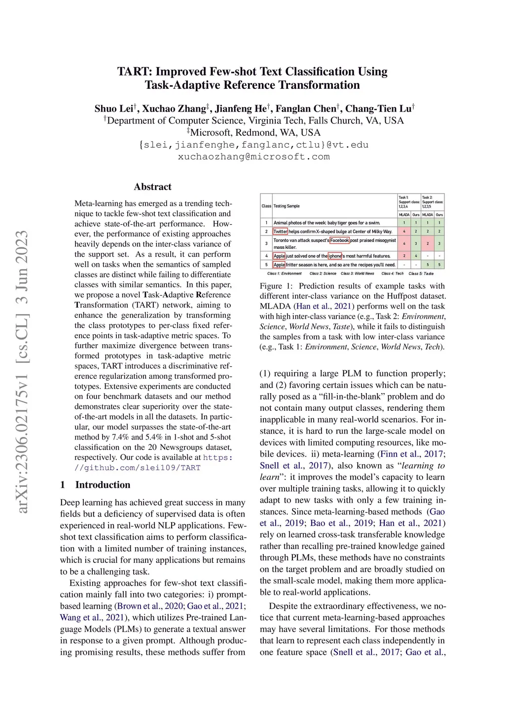 TART: Improved Few-shot Text Classification Using Task-Adaptive