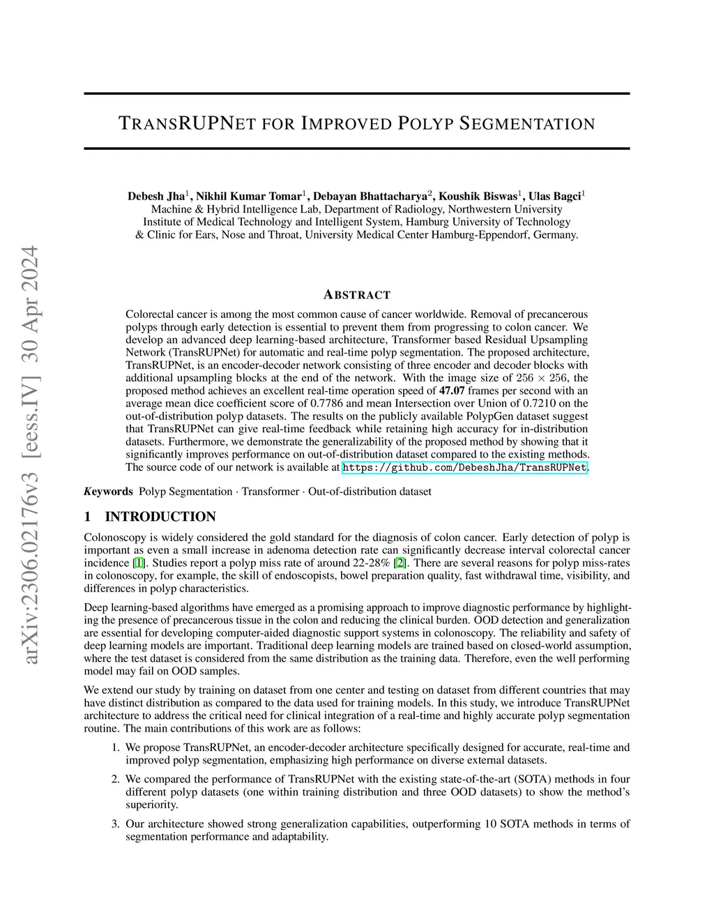 TransRUPNet for Improved Polyp Segmentation