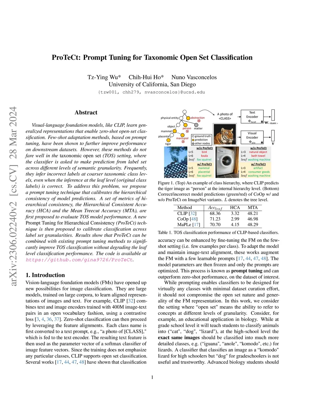 ProTeCt: Prompt Tuning for Taxonomic Open Set Classification