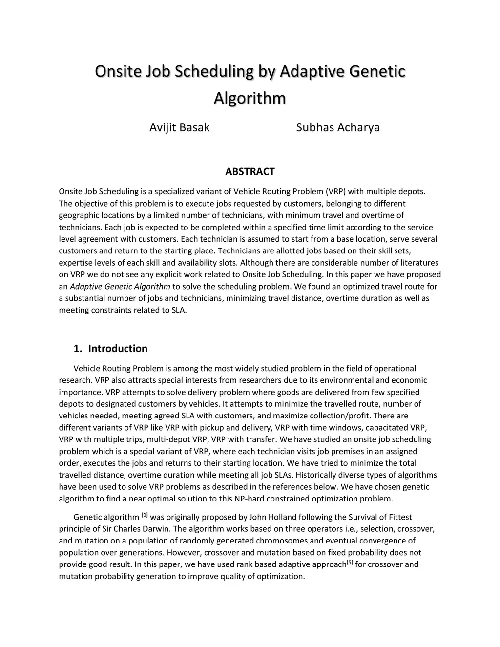 Onsite Job Scheduling by Adaptive Genetic Algorithm