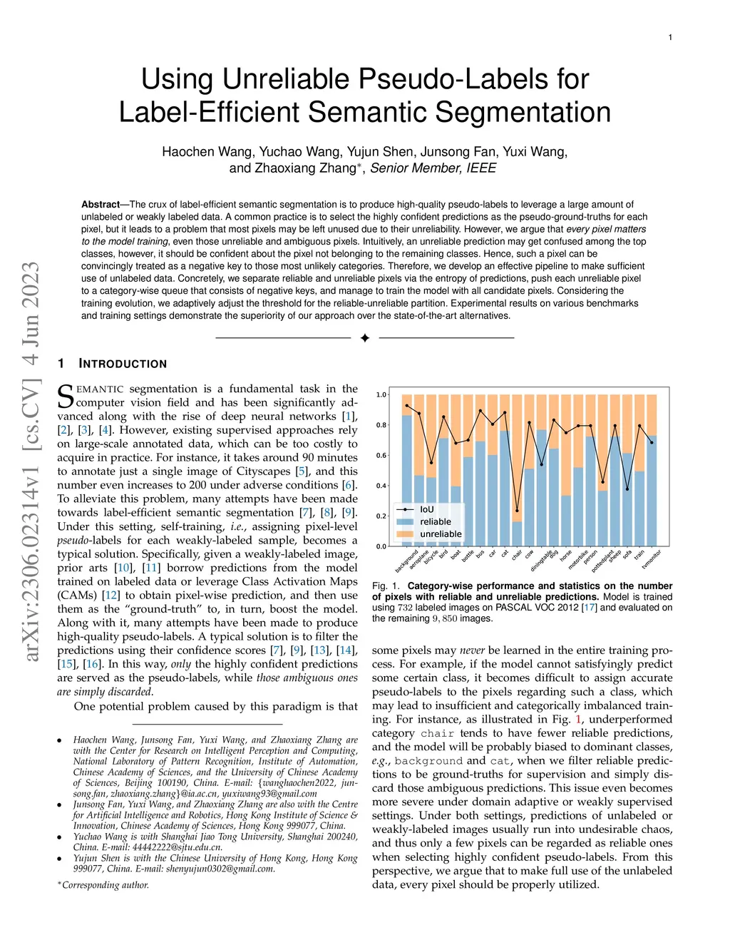 Using Unreliable Pseudo-Labels for Label-Efficient Semantic Segmentation