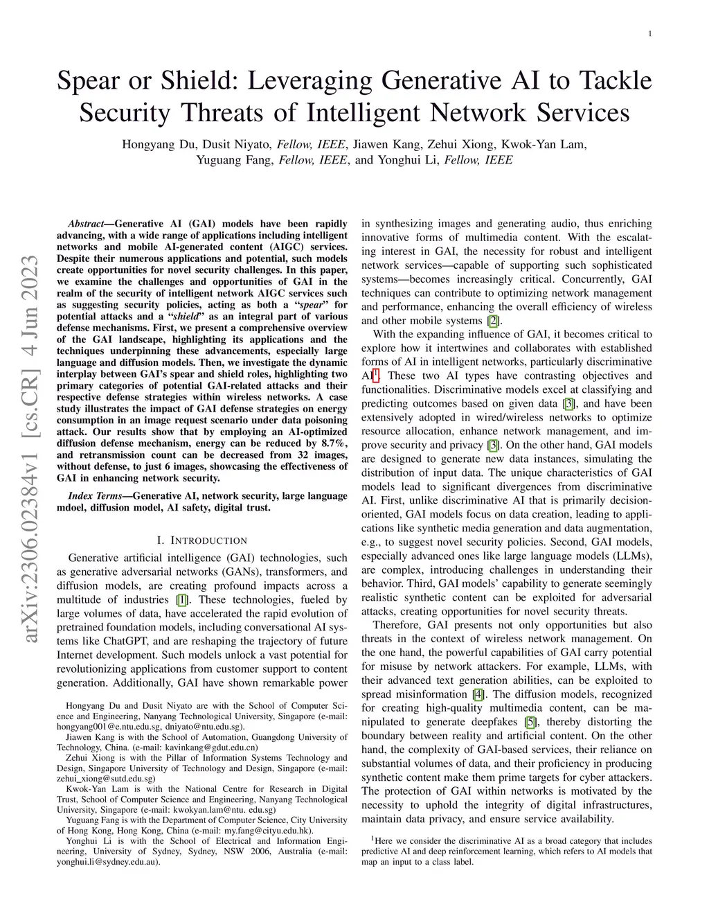 Spear or Shield: Leveraging Generative AI to Tackle Security Threats of