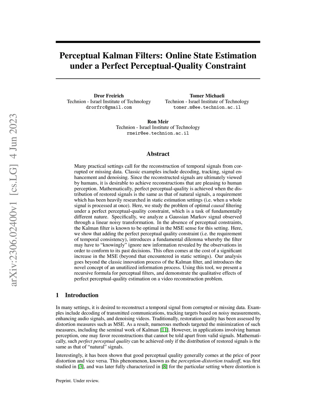 Perceptual Kalman Filters: Online State Estimation under a Perfect