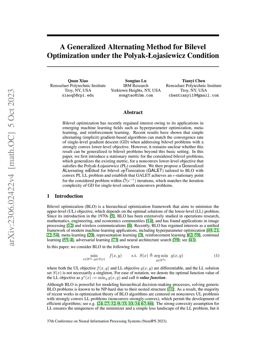 Bilevel optimization has recently regained interest owing to its applications in emerging machine learning fields such as hyperparameter optimization, meta-learning, and reinforcement learning. Recent results have shown that simple alternating (implicit) gradient-based algorithms can match the convergence rate of single-level gradient descent (GD) when addressing bilevel problems with a strongly convex lower-level objective. However, it remains unclear whether this result can be generalized to bilevel problems beyond this basic setting. In this paper, we first introduce a stationary metric for the considered bilevel problems, which generalizes the existing metric, for a nonconvex lower-level objective that satisfies the Polyak-{\L}ojasiewicz (PL) condition. We then propose a Generalized ALternating mEthod for bilevel opTimization (GALET) tailored to BLO with convex PL LL problem and establish that GALET achieves an -stationary point for the considered problem within iterations, which matches the iteration complexity of GD for single-level smooth nonconvex problems.
