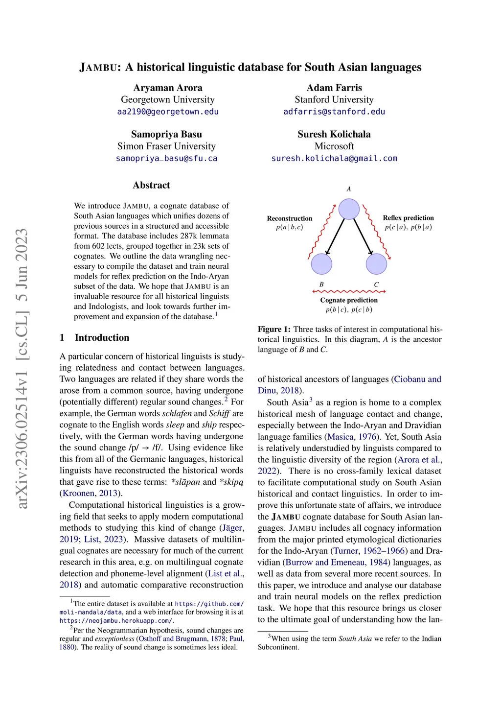 We introduce Jambu, a cognate database of South Asian languages which unifies dozens of previous sources in a structured and accessible format. The database includes 287k lemmata from 602 lects, grouped together in 23k sets of cognates. We outline the data wrangling necessary to compile the dataset and train neural models for reflex prediction on the Indo-Aryan subset of the data. We hope that Jambu is an invaluable resource for all historical linguists and Indologists, and look towards further improvement and expansion of the database.
