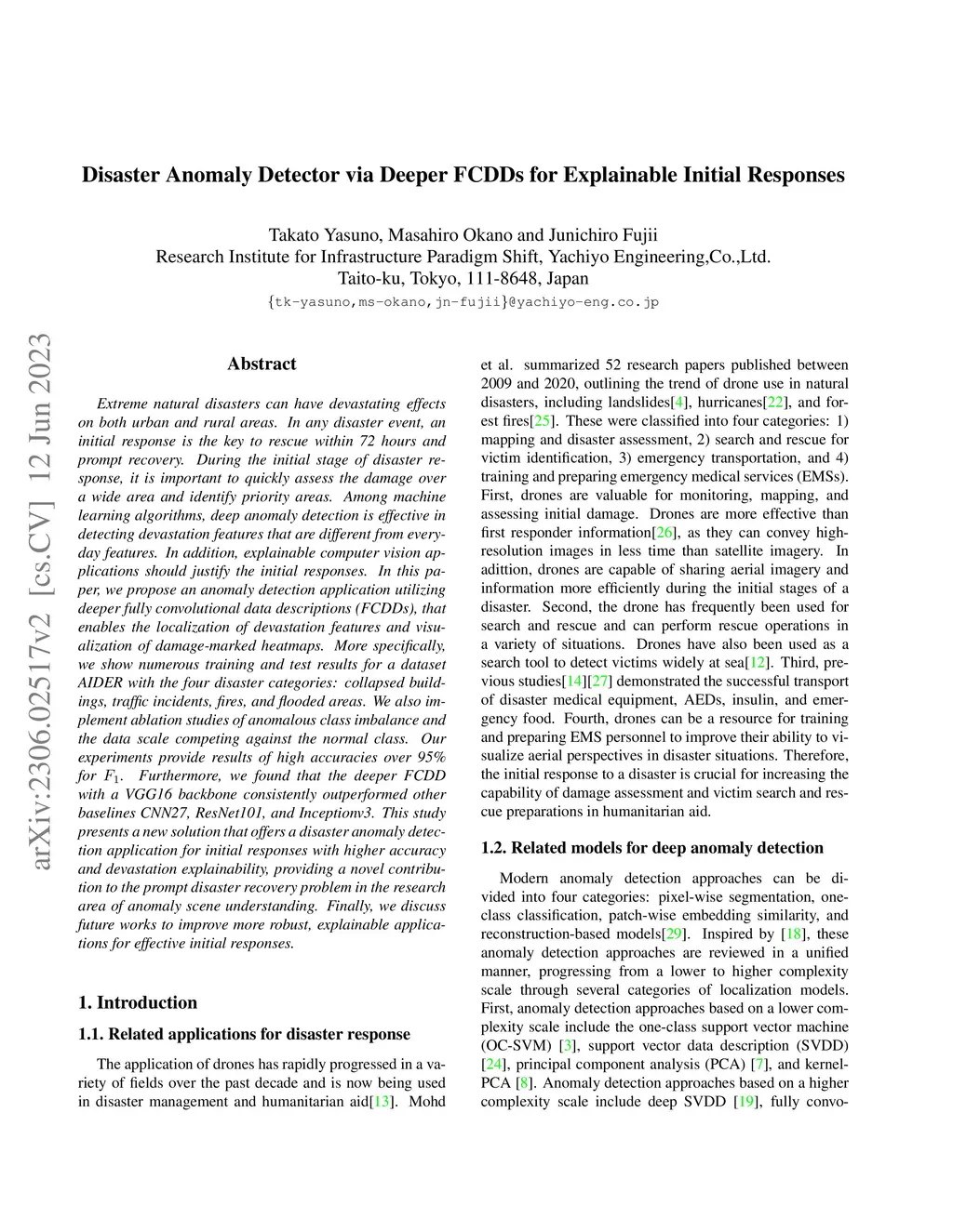Disaster Anomaly Detector via Deeper FCDDs for Explainable Initial