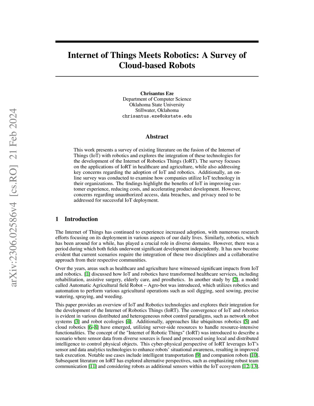 Internet of Things Meets Robotics: A Survey of Cloud-based Robots
