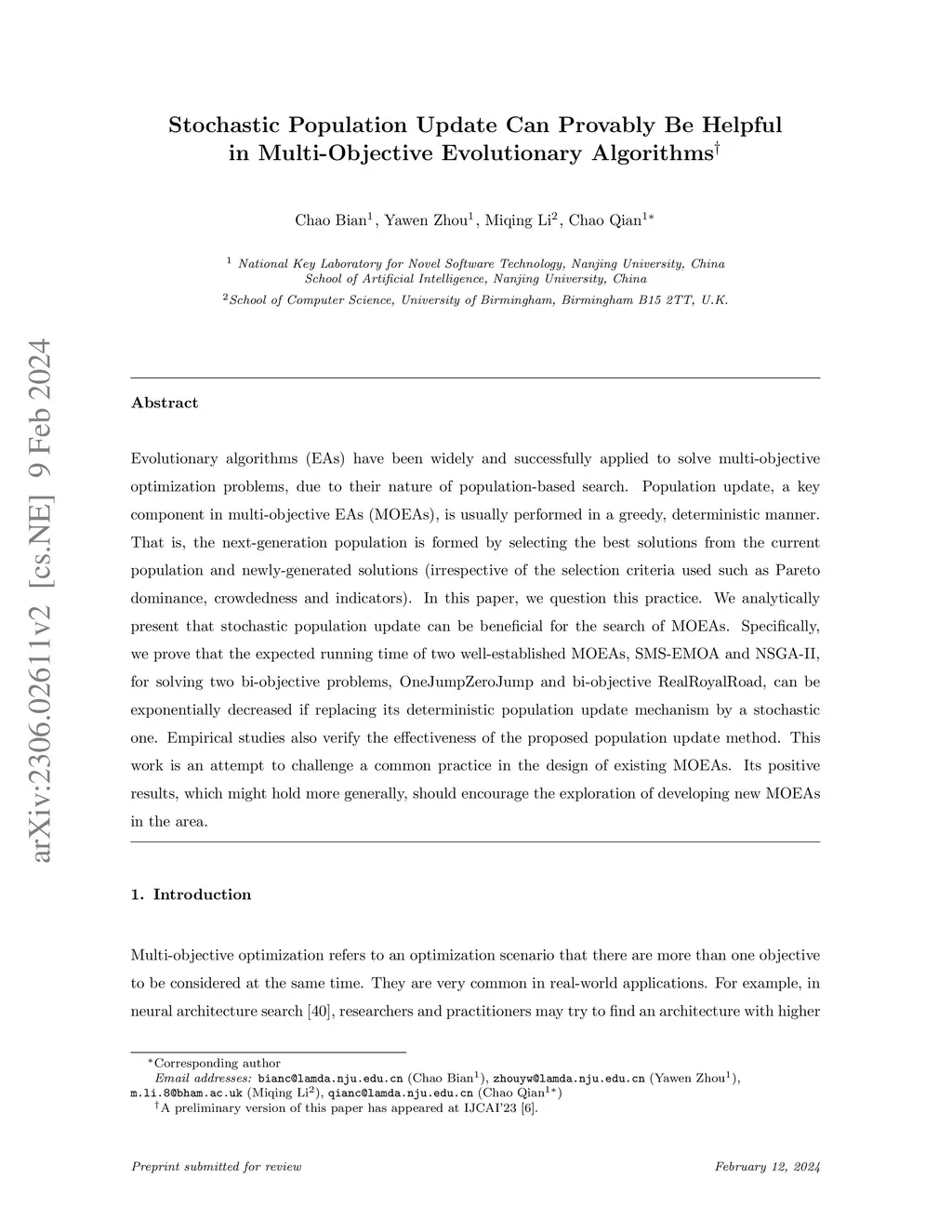 Stochastic Population Update Can Provably Be Helpful in Multi-Objective Evolutionary Algorithms