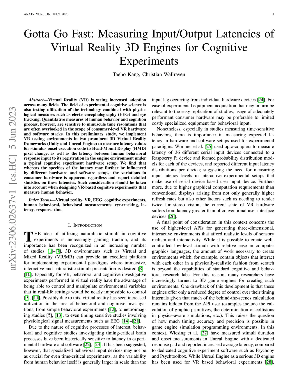 Gotta Go Fast: Measuring Input/Output Latencies of Virtual Reality 3D