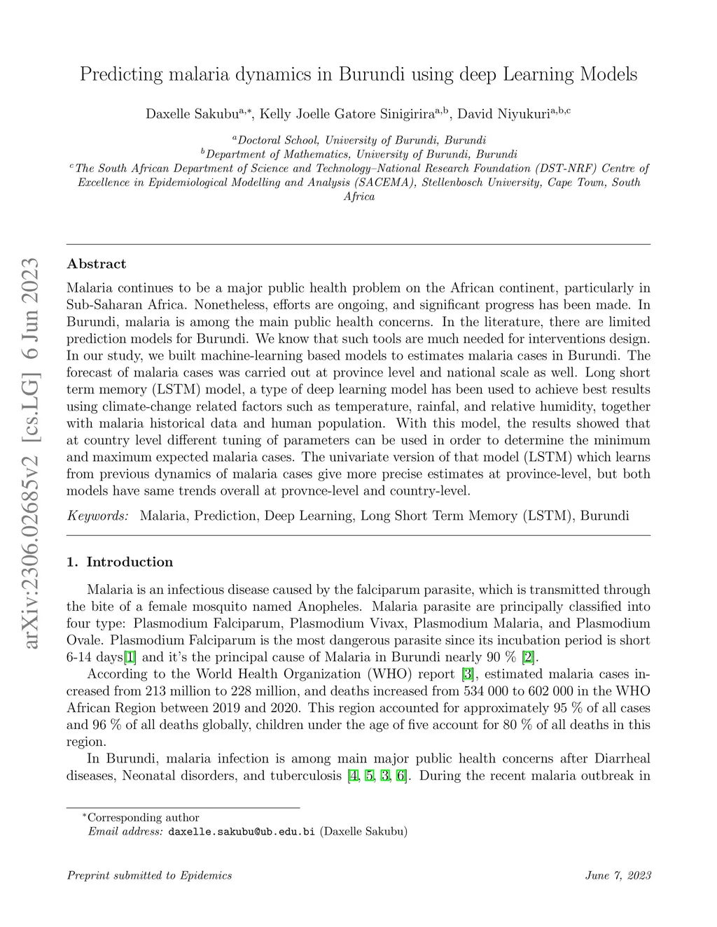 Predicting malaria dynamics in Burundi using deep Learning Models