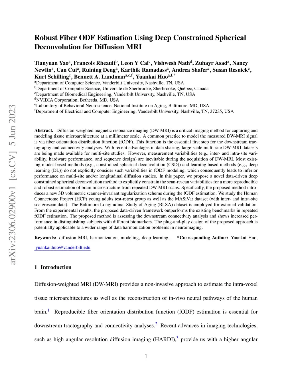 Diffusion-weighted magnetic resonance imaging (DW-MRI) is a critical imaging method for capturing and modeling tissue microarchitecture at a millimeter scale. A common practice to model the measured DW-MRI signal is via fiber orientation distribution function (fODF). This function is the essential first step for the downstream tractography and connectivity analyses. With recent advantages in data sharing, large-scale multi-site DW-MRI datasets are being made available for multi-site studies. However, measurement variabilities (e.g., inter- and intra-site variability, hardware performance, and sequence design) are inevitable during the acquisition of DW-MRI. Most existing model-based methods (e.g., constrained spherical deconvolution (CSD)) and learning based methods (e.g., deep learning (DL)) do not explicitly consider such variabilities in fODF modeling, which consequently leads to inferior performance on multi-site and/or longitudinal diffusion studies. In this paper, we propose a novel data-driven deep constrained spherical deconvolution method to explicitly constrain the scan-rescan variabilities for a more reproducible and robust estimation of brain microstructure from repeated DW-MRI scans. Specifically, the proposed method introduces a new 3D volumetric scanner-invariant regularization scheme during the fODF estimation. We study the Human Connectome Project (HCP) young adults test-retest group as well as the MASiVar dataset (with inter- and intra-site scan/rescan data). The Baltimore Longitudinal Study of Aging (BLSA) dataset is employed for external validation. From the experimental results, the proposed data-driven framework outperforms the existing benchmarks in repeated fODF estimation. The proposed method is assessing the downstream connectivity analysis and shows increased performance in distinguishing subjects with different biomarkers.