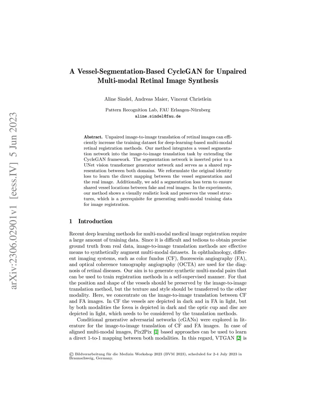A Vessel-Segmentation-Based CycleGAN for Unpaired Multi-modal Retinal