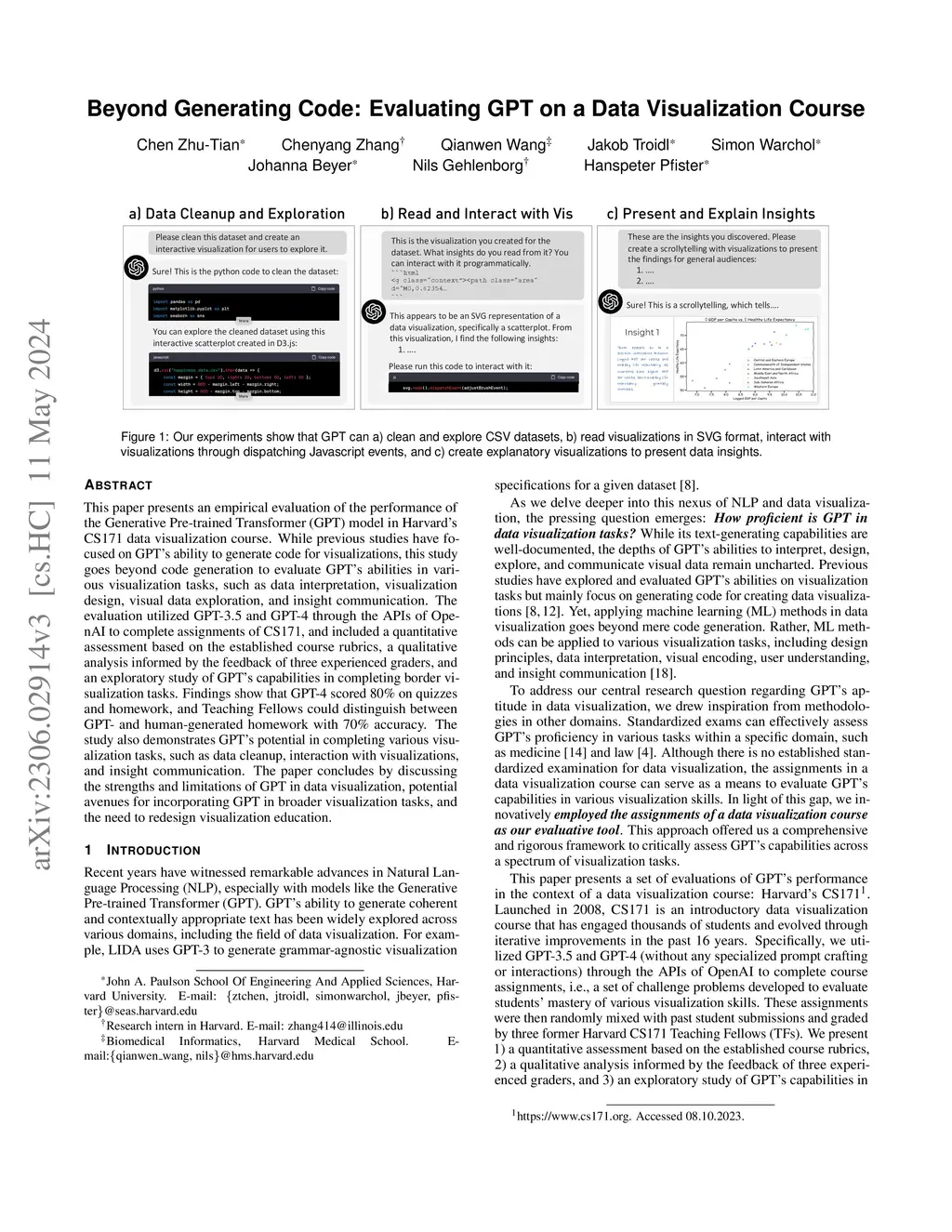 Beyond Generating Code: Evaluating GPT on a Data Visualization Course